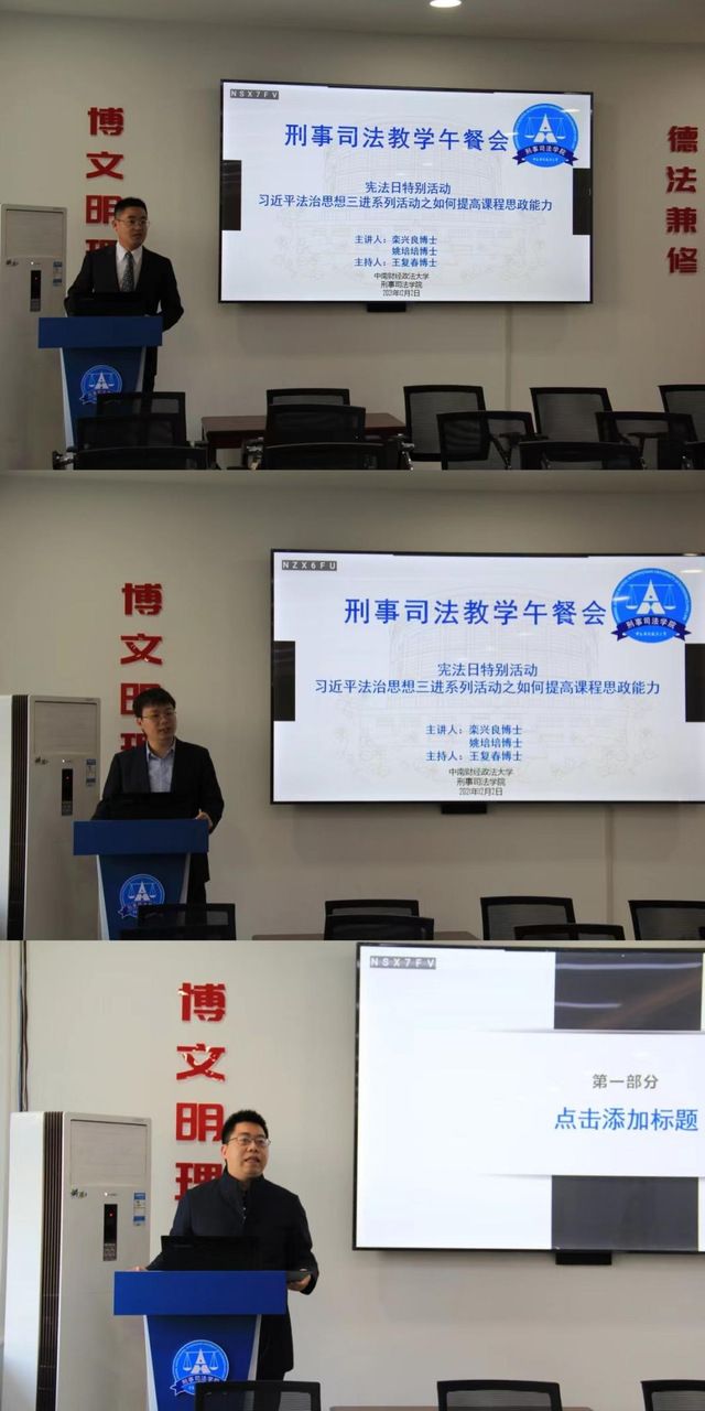新闻网讯(通讯员:郭泽强 刘敏 摄影:刘敏)为落实落细习近平法治思想“三进”工作,纪念国家宪法日,12月2日,刑事司法学院举办了首次教学午餐会。会议的主题聚焦专业教师如何提高课程思政能力,特别是财经政法高校如何将习近平法治思想进教材、进课堂、进头脑,从而构建两翼并进的课程建设模式。据悉,这是该院继在学校首创学术午餐会后,又推出旨在增进教师交流繁荣学科建设的另一个重要创新平台。