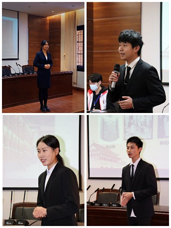 随后,活动正式开始,选手们依序上台。他们带领观众和评委,从布满弹孔的染血战袍中倾听起义中,底层士兵向往民主共和的心声。在租界、洋商石刻,以及那无意中发掘的辛亥革命无名英雄纪念碑中,回顾那段屈辱历史里的淤血抗争。于革命双杰孙中山、黄兴的相遇,辛亥革命这个历史必然中所蕴涵的偶然,探寻中华民族反抗暴戾,争取民族独立,民族振兴的伟大精神。选手们风格各异,刘孟坦同学深情并茂的为我们讲述民主人士张澜先生的斗争历程,许博同学则以小见大,从市民生活习俗变换,平和生动,波澜不惊的讲述辛亥革命带来的伟大变革。当然,只要有心,无论经验丰富与否都能讲好中国故事。从未参与过这类比赛的吕佳迪同学,用她朴实无华的讲解,突破自我,同样给大家留下深刻印象。一份份物件,一个个相遇,一串串事件,选手们用微妙的语言将其娓娓道来,展现出风云突变下的辛亥中国,让倾听者为之动容。无论是备战中的其他选手,还是到场的志愿者,亦或是随行而来的观众,都沉浸在他们的讲解中,纷纷展示出若有所思的神情。