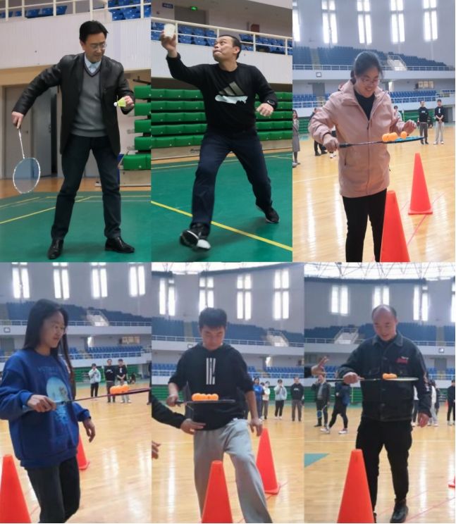 随后,趣味羽毛球赛接力进行。张志刚书记、万里雪副书记、彭倩老师分别带领三组学生,在“环环相扣”中沉着控球、全情投入,在“隔河传物”中默契击球、互信互助,为大家呈现了一场精彩绝伦的趣味小组比赛,充分展现了师生之间的凝聚力和团队协作意识,体现了参赛队员奋发向上、永争一流的良好精神风貌。现场气氛活泼热烈,呐喊声、喝彩声、欢呼声回荡在球馆中。