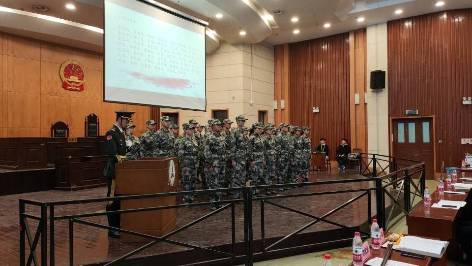 时间长河淌流不息,红旗尚留余温;时代浪潮滚滚翻涌,前路仍漫长。多少届,光影轮换,护旗的心跳动不止。光阴的尘沙,遮不住它的灼灼其华,新鲜血液的涌入,使它永远熠熠生辉。2021年11月25日下午两点,中南财经政法大学国旗护卫队第二十届队员入队仪式于文泰楼模拟法庭一举行,全体21级队员身着作训服参加了本次入队仪式。出席本次入队仪式的嘉宾有中南财经政法大学刑事司法学院党委书记张志刚、刑事司法学院院长胡向阳教授、刑事司法学院党委副书记万里雪、国旗护卫队指导老师郭青川和校团委组织部、校团委宣传部、校团委社团管理部、校学生会、学生国防教育协会、尼加提·雪莲花志愿服务队、红十字志愿服务队、校礼仪志愿服务队等校级组织、社团的负责人以及在汉兄弟院校的国旗护卫队(仪仗队)的战友代表。