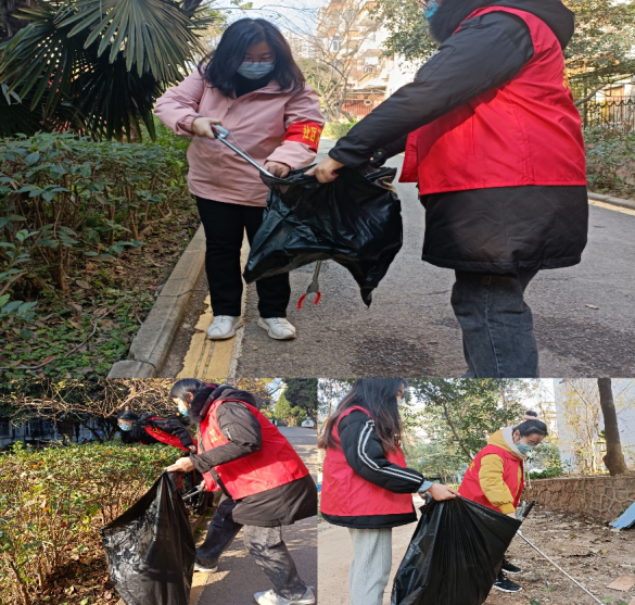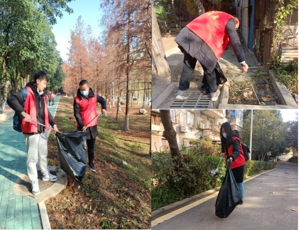 为培养研究生劳动意识,提高研究生的综合素质, 促进研究生良好思想道德的形成,12月17号,我院研究生会联合南湖社区,在辅导员彭倩老师的带领下,开展了“校园因你而美丽,劳动因你而出彩”志愿服务活动。