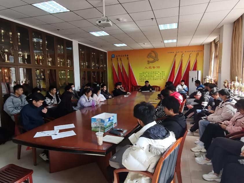 会议伊始,郭老师指出在入学教育方面,从开学对新生的“三个一”的入学教育,到学生们圆满完成军训各项任务,并获得红歌比赛二等奖、优秀连队、优秀方阵等荣誉称号,再到班级导师制度和兼职辅导员下沉班级主题活动。开学工作的顺利开展与学生们的积极配合有关,也离不开各班班委的努力,同时也感谢学院党委对年级工作的支持。随后郭老师对本学期开展的其他工作进行总结,在“宿舍文化建设四步走”方面,第一步是宿舍人际关系处理的艺术”心理教育宣讲;第二步是宿舍文化评比活动;第三步是教工党员下沉宿舍进行防诈法制宣讲与学业指导;第四步是宿舍冬日团建活动。他指出这一系列的活动能圆满结束离不开学生们的积极参与,班委们的认真筹划和学院的大力支持。在日常三查方面,郭老师强调班委应认真做好本职工作;在晚点名方面,各班班长认真落实,反馈真实情况;在课堂考勤方面,学习委员做好考勤工作,及时反馈情况,同时注意与学生们的沟通方式;在卫生检查方面,生活委员做好卫生检查与督促,同时做好带头作用。郭老师重点提到各班委开展工作时要认真做好数据调查,通过数据库把握各项工作从而更好的处理各项工作,应做好带头作用,树立奉献意识与服务意识,提高自身公信力。在学院、学校层面活动中,比如校运会、首届“红韵杯”讲解员大赛、团支部风采大赛等都出现了2021级学生们以及班委的身影,也为学院取得成绩贡献“一字班”力量。