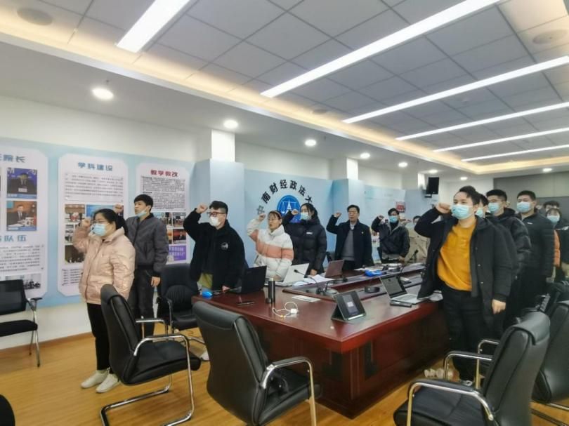 紧接着,中南财经政法大学彭倩老师带领全体党员重温入党誓词,铭记党员初心,强化责任担当,践行对党的庄严承诺。