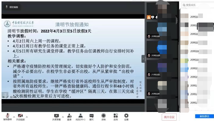 (通讯员:邱丽云)3月31日下午3点我院以线上会议召开了2022年研究生安全教育会议。辅导员彭倩、全体研究生参会,会议由2021级侦查学硕士生王江昕主持。