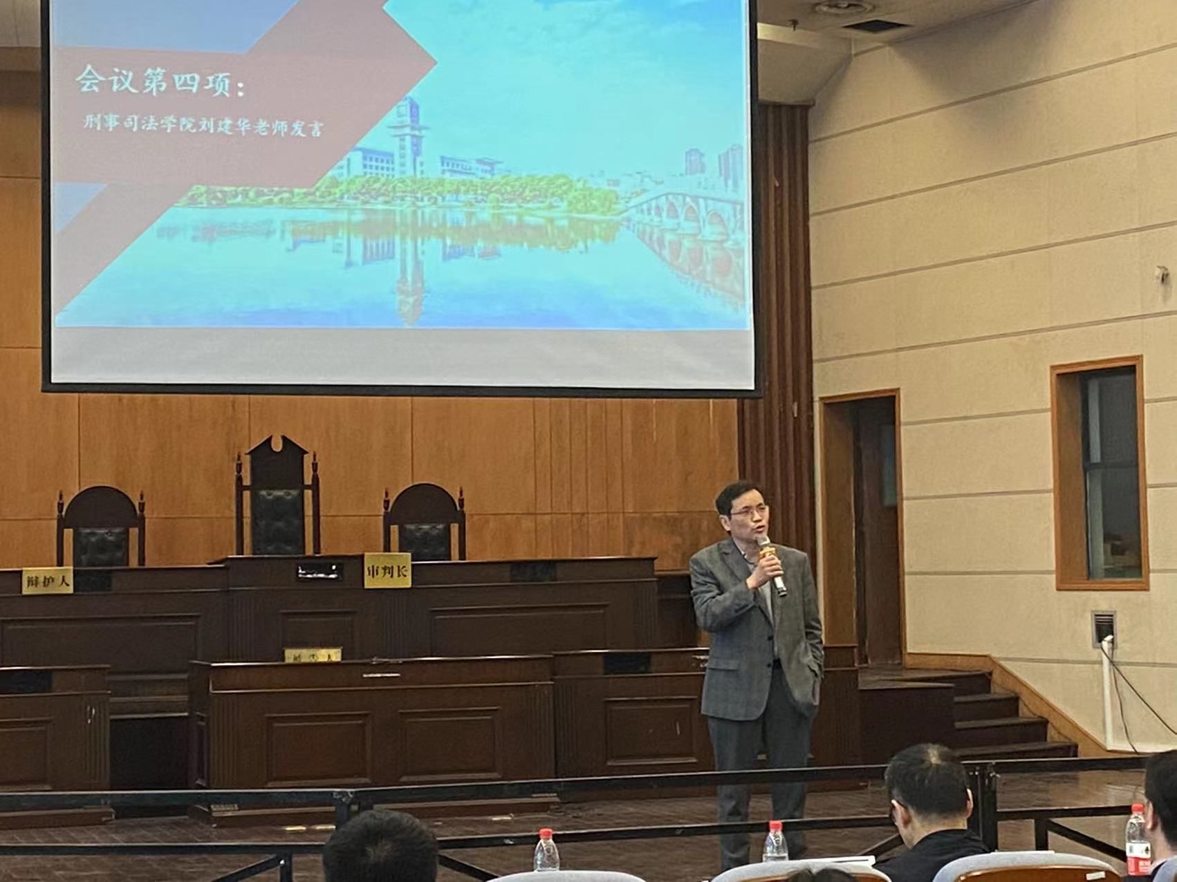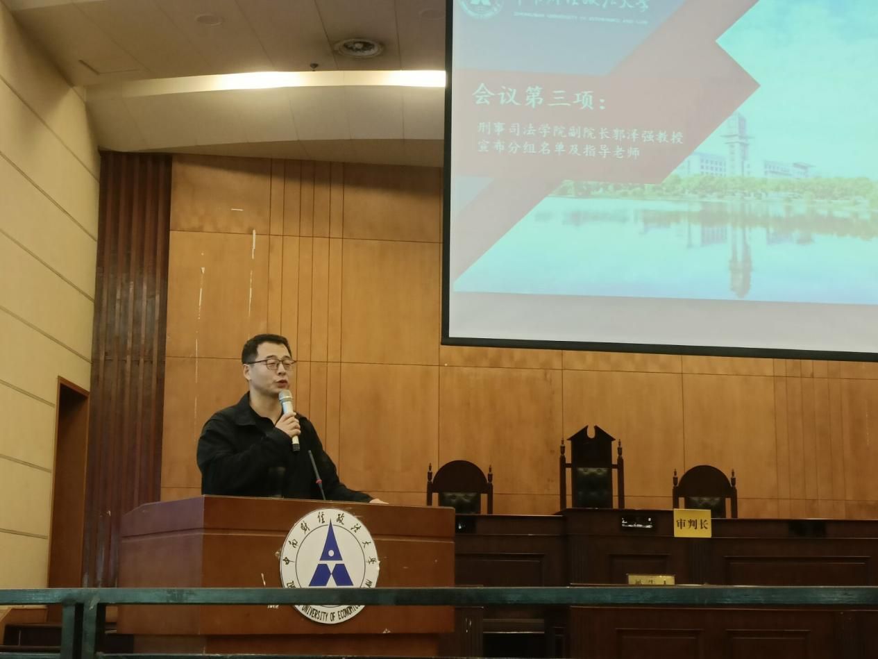 新闻网讯(摄影:刘子枫 通讯员:郭青川 金雯星)为了促进人才培养,探索实践教学模式,4月7日下午,刑事司法学院在模拟一法庭举行了创新实践兴趣小组成立大会暨师生见面会。刑事司法学院院长胡向阳教授、院党委书记张志刚、副院长董邦俊教授、副院长郭泽强教授,周凌副教授等出席。