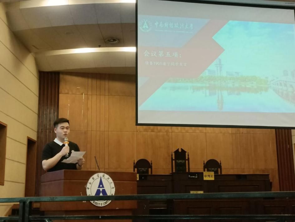 随后,大会第四项,由侦查1901班的潘宁同学作为学生代表进行发言。潘宁同学在发言中表达了对于学院各位老师搭建出这样一个平台的感谢之情,随后阐述了作为学生在兴趣小组内的行为标准。