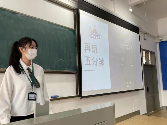 下一板块是主持人对于失眠和熬夜的更深层次的探讨,从原因入手,主持人列举了几个最容易影响当代大学生睡眠的因素,例如环境因素,生理因素和心理因素。同时也分析了ddl,手机游戏,短视频这几类因素是如何影响大学生的睡眠。而为了使同学们更珍惜睡眠时间,了解时间在睡眠质量中扮演的重要角色,主持人通过邀请同学上台参与“再玩五分钟”小游戏的方式,加强了同学们对时间的把握,同时也加深了同学们的时间观念。