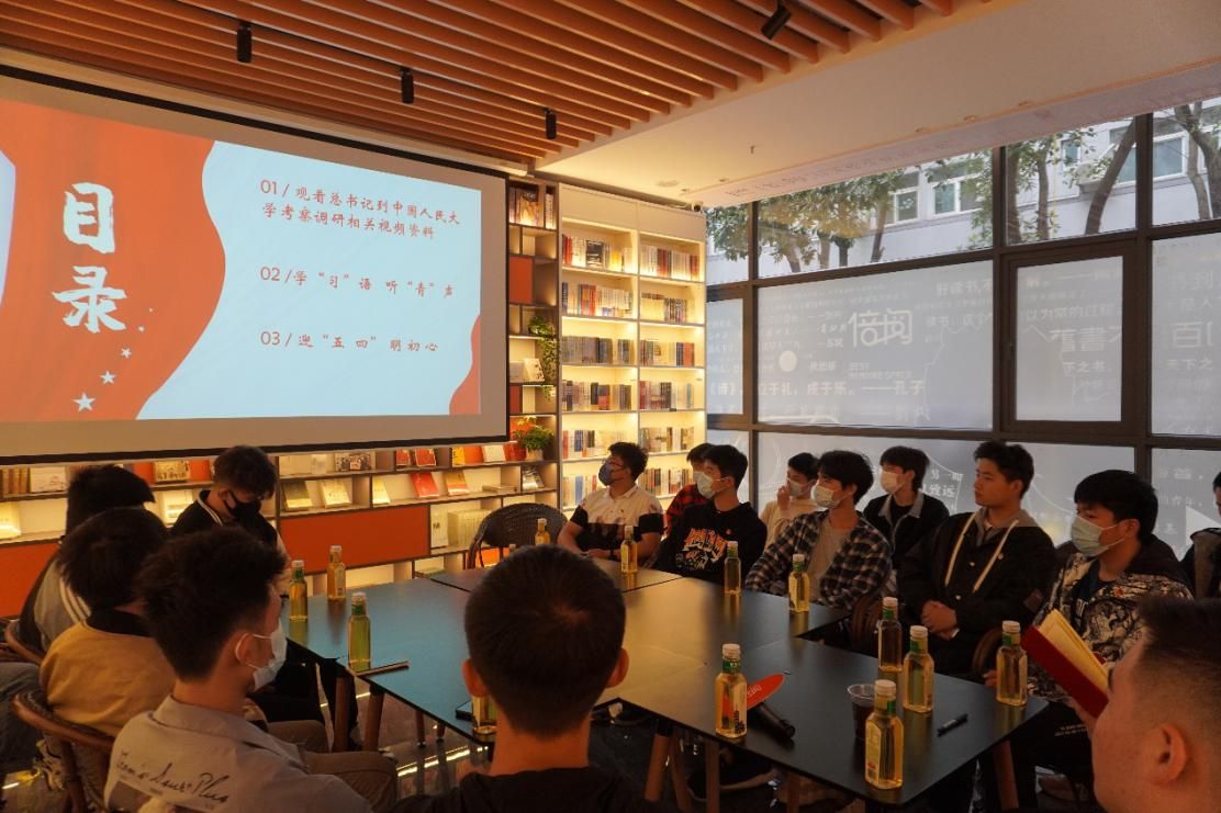 新闻网讯(学生记者 齐敬凯 喻宇轩 陈大伟)5月1日9:30,为深刻践行刑事司法学院分团委“党建带团建,团建促发展”的工作路线,引导广大团员青年体悟党中央对青年人的殷切希望,坚定理想信念,勇担时代使命,根据《共青团中央关于开展“喜迎二十大、永远跟党走、奋进新征程”主题教育实践活动的通知》精神,学院分团委在倍阅书店召开学习贯彻习近平总书记中国人民大学重要讲话精神座谈会。会议由刑事司法学院院团委副书记陈大伟主持,学院各团学组织及各年级共30名青年代表出席座谈会。
