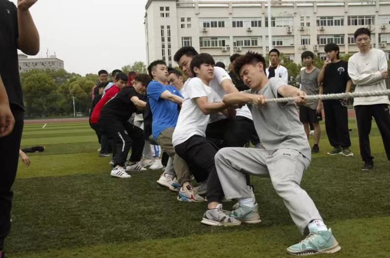 拔河比赛推高潮,团结一心手并手。在足球场的中心,有不遗余力的参赛者,还有呐喊助威的观赛者?!盎χ伲蛭薏皇ひ病保诘谝换睾?,1班和4班僵持许久,但没有一个人轻言放弃。同学们紧攥绳子,双脚用力蹬地,身体向后倾斜,精神抖擞,势不可当。经过几轮艰难的比拼,4班战无不胜、拔得头筹。众人拾柴火焰高,赛场上,同学们以拼搏之姿谱写了一曲团结之歌;未来生活中,同学们将踵事增华,众志成城汇强力。