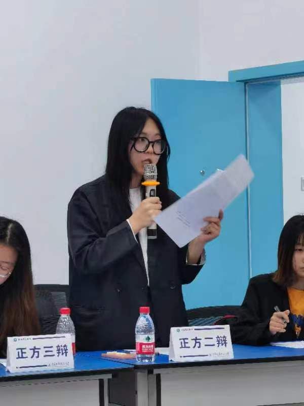 决赛由中韩新媒体学院团委副书记周白煜、校辩论队预备队长尤雨曦、哲学院辩论队20级队长张安琪作为评委。