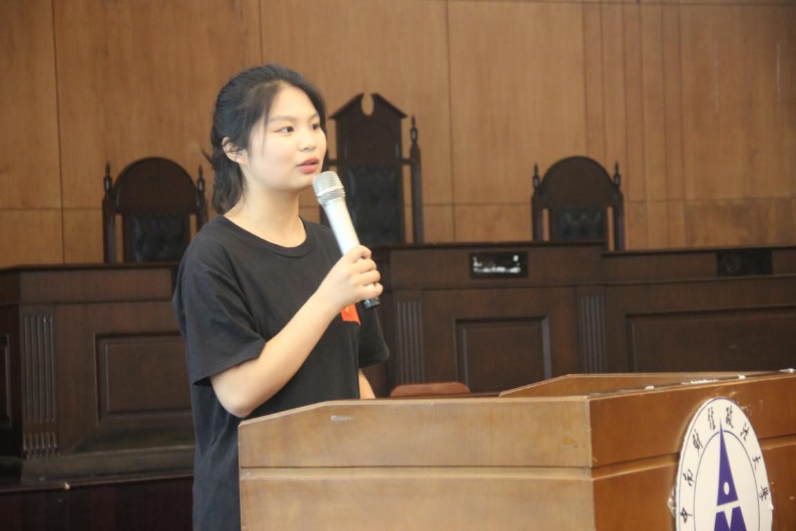 接下来,中南财经政法大学国旗护卫队宣讲团负责人沈昱彤进行了以《大学生纪律建设——中南大国旗护卫队在路上》为题的主题宣讲。中南大国旗护卫队党支部作为华中地区首个学生学习型党支部,有着严明的纪律性,在长期的发展过程中涌现出了一批批优秀的青年党员,他们用行动坚决地维护党和国家的形象,并且时刻以严明的纪律要求自身,对党忠诚,保持着护旗人的初心与使命,是我们中南财经政法大学青年党员的杰出代表,也是当代青年党员的优秀模范。
