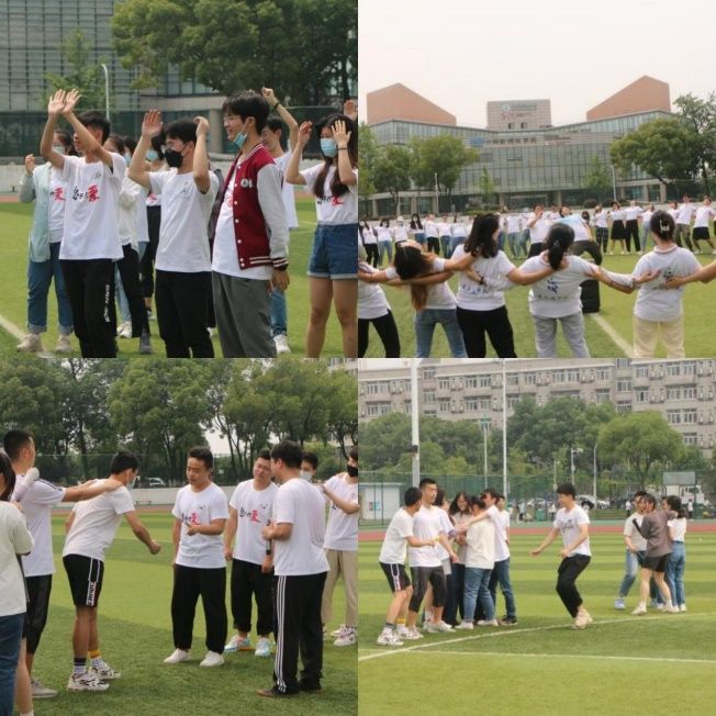 破冰游戏让同学们活动了筋骨,接下来的组队挑战环节让同学们在实践中锻炼了团队协作能力,提升了集体荣誉感。同学们随机分成四组,在团队建设完成后,分别进行了“鼓动人心”和“风雨同舟”两个游戏。经过反复的磨合与练习,各组同学们在最后的比拼中都取得了最佳表现,让同学们有满满的体验感和获得感。