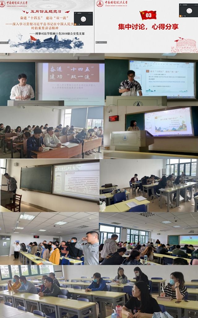 按照学院党委统一部署,我院研究生各党支部围绕“奋进‘十四五’建功‘双一流’——深入学习贯彻习近平总书记在中国人民大学考察时的重要讲话精神”主题开展了5月支部主题党日活动。各研究生党支部重点学习了《习近平在中国人民大学考察时强调坚持党的全面领导传承红色基因扎根中国大地走出一条建设中国特色世界一流大学新路》《习近平:思政课是落实立德树人根本任务的关键课程》等文件,重点围绕“坚定不移听党话、跟党走,努力成长为堪当民族复兴重任的时代新人”开展研讨交流。