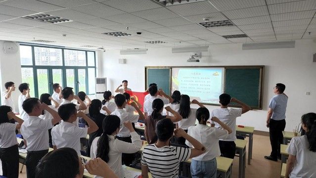 随后,张志刚书记、彭倩老师及入党介绍人分批为转正的党员佩戴党员徽章、送上党员纪念品。全体党员在李亚飞同志带领下重温入党誓词,在铿锵有力的誓言中铭记初心,砥砺奋进。