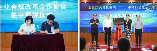 中南财经政法大学刑事司法学院教授、博士生导师童德华和武昌区检察院党组成员、副检察长田勋红签署了企业合规合作协议。