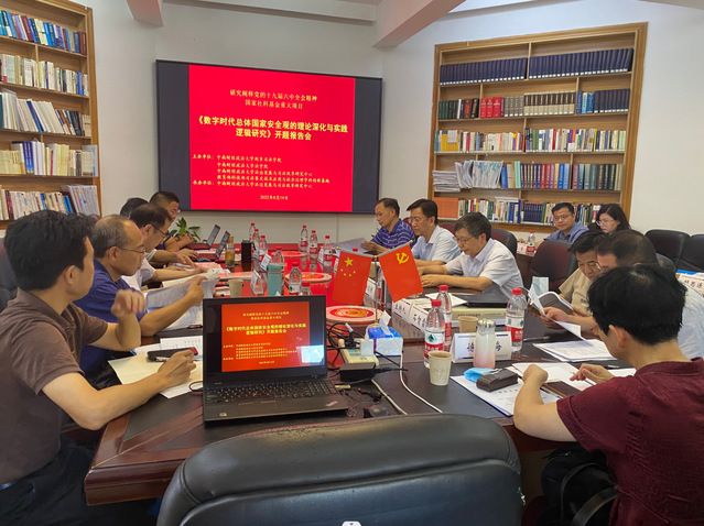 新闻网讯(通讯员:江发权 姜公映 付玉)2022年8月14日,研究阐释党的十九届六中全会精神国家社科基金重大课题《数字时代总体国家安全观的理论深化与实践逻辑研究》开题报告会在中南财经政法大学法治发展与司法改革研究中心举办。中南财经政法大学刑事司法学院董少平教授作为首席专家,代表课题组向在场专家学者汇报了课题的选题背景、研究切入点、研究思路、拟解决的关键问题以及一步该如何突破、创新和推进作出安排,重点就选题的总体框架,总课题、子课题之间相互逻辑关系予以详细说明。