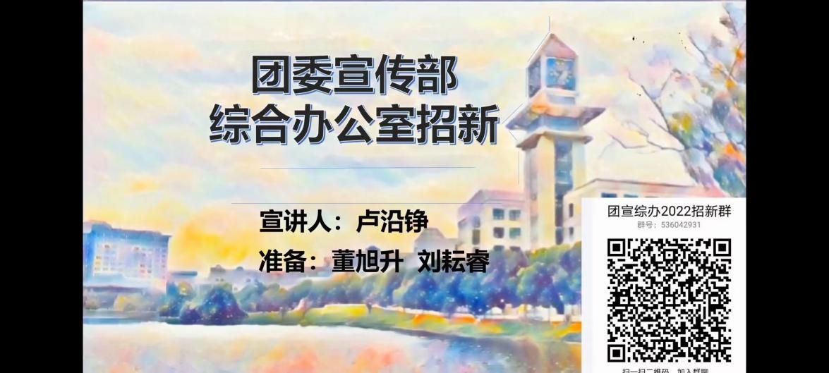 紧接着,院团委宣传部的各部门按照综合办公室、新闻工作办公室、新媒体工作办公室、视觉传达办公室的顺序进行宣讲。团委宣传部是我院宣传工作的主要承担部门,工作内容包括公众号运营、新闻活动追踪报道、宣传视频及海报制作等。其各下设部门的讲解也结合了视频、快闪等新颖的形式,令人耳目一新。团委宣传部是我院面向外界形象的第一道窗口,其工作中长期传承下来的认真负责的精神和不俗创造力长期以来滋润着一代又一代的团宣人不断成长进步,也不断促进着我院团委对外宣传工作的不断优化创新,是我院团学工作中不可或缺的中流砥柱。