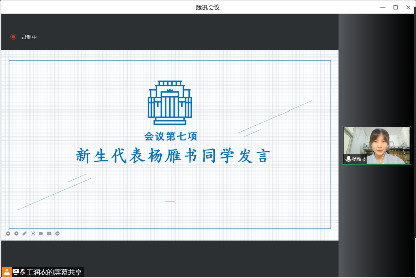 会议最后一项,由研究生新生代表杨雁书同学代表全体22级刑法研究生做出承诺,在日后的学习生活中,我们都会竭尽所能,去妥当完成每一项任务,认真看完每一本书,潜心听完每一节课,尽力写好每一篇论文,聆听老师们的教诲,培养独立的思维,给自己营造一个健康有动力的环境,支撑自己不断成长,始终保持一个积极开朗的态度,不留遗憾地度过在中南的三年时光!