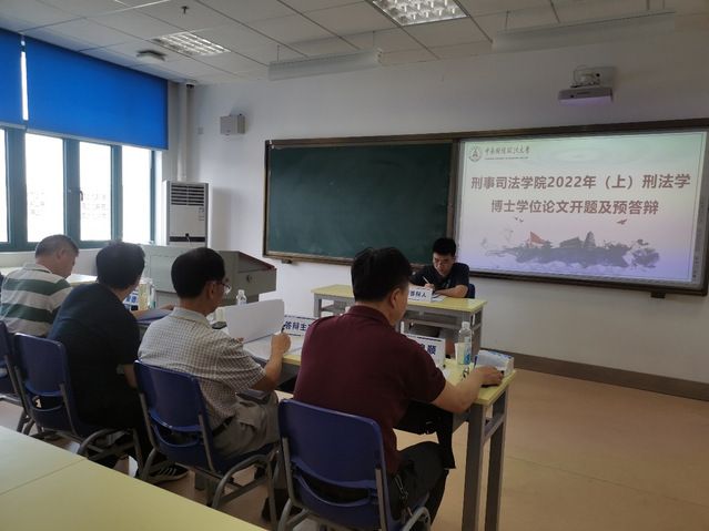 2022年6月30日上午8点30分,我院2022年(上)刑法学专业博士生毕业论文答辩、开题答辩在文澴楼516、520教室准时开始。答辩会由中南财经政法大学刑事司法学院齐文远教授、夏勇教授担任答辩委员会主席,我院童德华教授、王良顺教授、田国宝编审、周详教授、程红教授、郭泽强教授担任答辩委员会委员。史文平、谷曼曼、张蓓蓓、李耀宇、袁子轩、成云卿、张澍7位博士生参加毕业论文预答辩,范煜、陈立、刘媛、刘纯燕、陶旭蕾、李罡、韦春发、陈鑫、方向楠、张禹、吴丰11位博士生参加毕业论文开题。答辩秘书由赵莹莹、徐前、王一冰、王之宇、李若愚、成功担任。部分刑法学硕、博士生到场旁听。