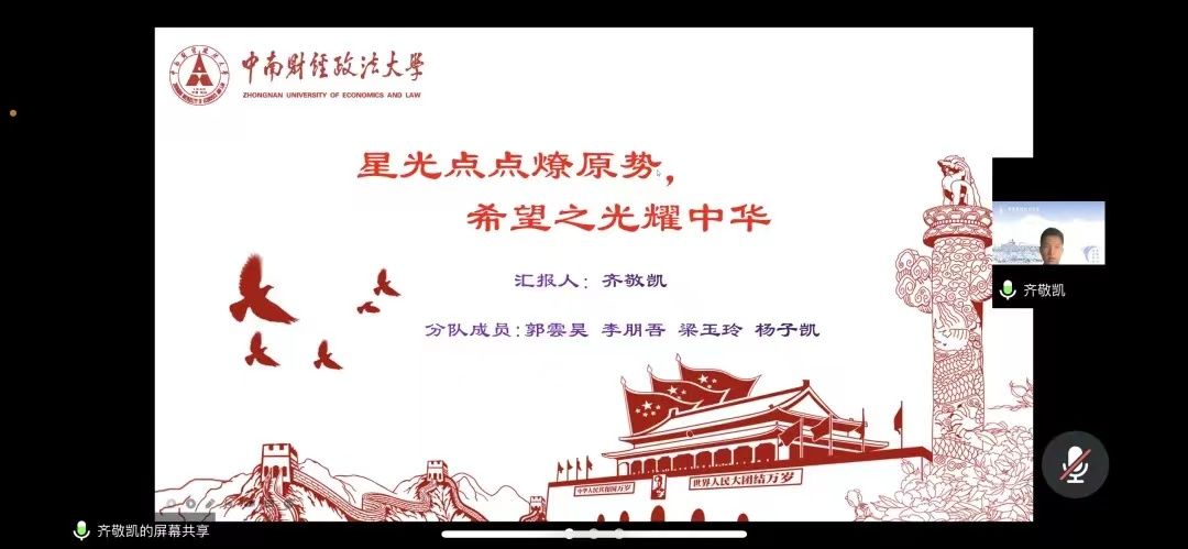 在暑假期间,八个实践队伍积极调研、攻坚克难,为本次答辩会带来了扣紧时代脉搏、宣扬红色经典的答辩主题。在本次线上答辩会中,各位答辩人突出各组项目陈述与风采展示,对小组实践过程、实践成果、实践宣传、实践感受等方面做出详细阐述。