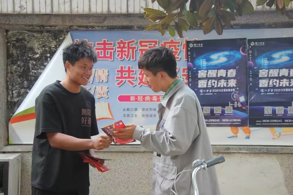 活动前,团支书和班长组织全体志愿者认真学习党的二十大报告。同学们一共分为五组:有擅长交际,敢于“破冰”的“社交达人”;有理论宣讲的“小讲解员”;还有提供保障的后勤人员和进行宣传记录的摄影人员。每个小组负责一块区域,进行流动式宣讲,力争宣传对象全覆盖。