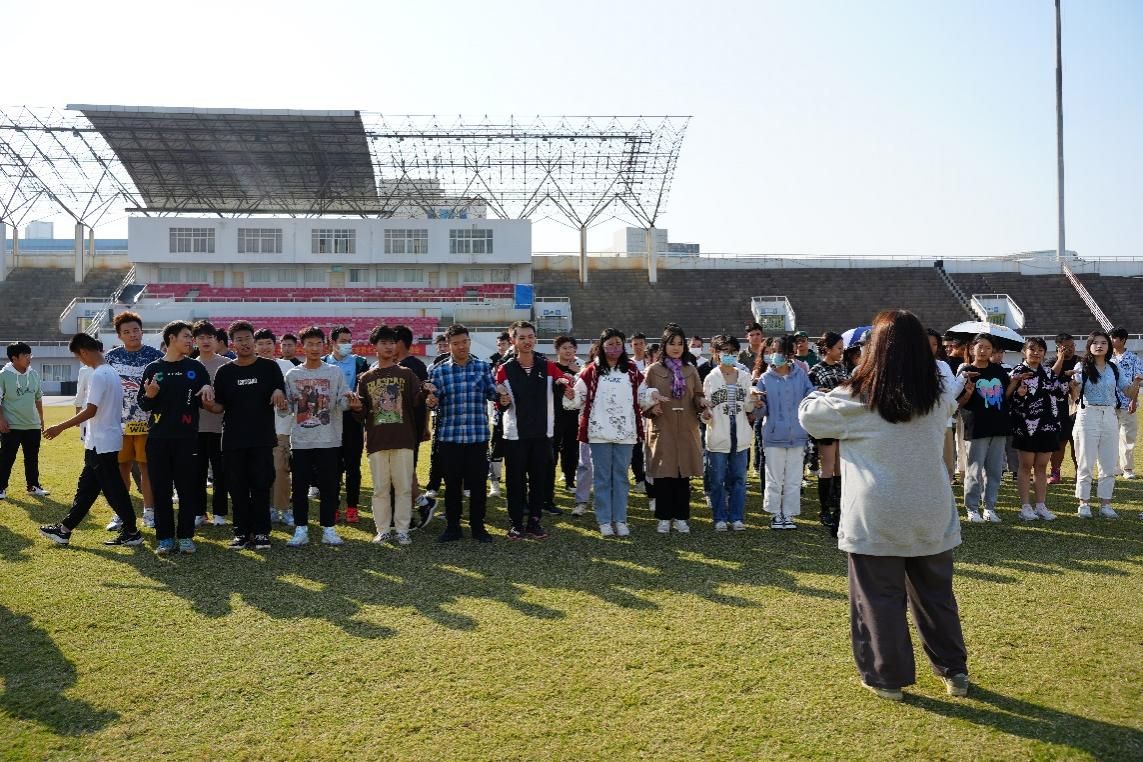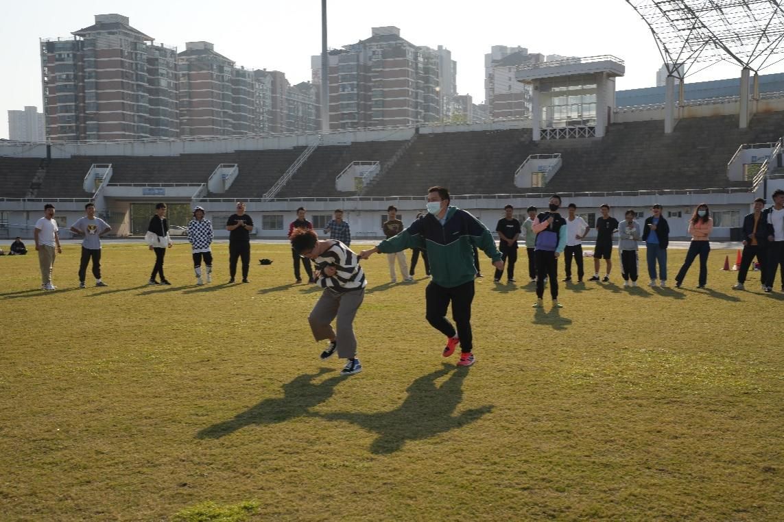 下午2时,活动在中南财经政法大学体育场举行,似火的骄阳并未阻挡同学们的激情。在主持人的带领下,同学们列队进行破冰环节。同学们先后体验了“抓手指”、“花开花落”,以及紧张刺激的“大吉大利今晚吃鸡”游戏。游戏考验了同学们的反应力、协调性以及默契,使同学们在活动中感悟团队精神,增强集体意识。
