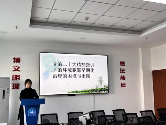 第一位发言人王煊雅同学研讨的主题是《党的二十大精神指引下的环境犯罪早期化治理的困境与出路》。