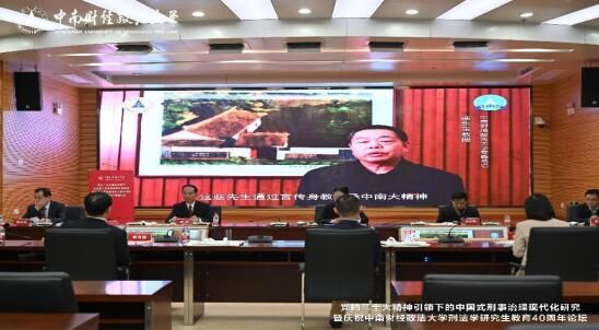 栾永玉教授在开幕式中发表线上致辞。他回顾了中南刑法学科在曾昭琼、齐文远等大先生们的开拓创新下,在40年间所取得的辉煌成就,号召全校师生学习他们对学术的坚守和创新精神,并祝愿中南刑法学科乘势而上,为学校“双一流”建设奉献更多智慧,贡献更大的力量。