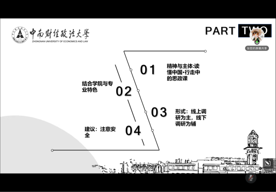 随后,张哲同学详细介绍了我院社会实践的多样形式与特色实践项目,强调了寒假社会实践立项与申报的程序细则与注意要点,为我院学子提供活动开展的建议。