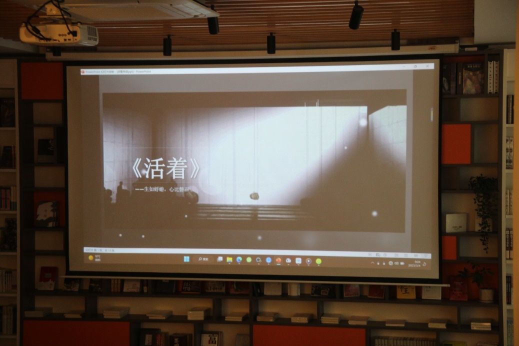 活动伊始,在悠扬的音乐声中,张老师带领同学们回顾了《活着》一书的故事梗概,作者余华老师在书中描绘了主人公福贵曲折起伏的悲惨一生。张老师引用书中的原句引领同学们体悟作品的精神内核,即在悲惨的人生中忍受现实所给予的苦难、无聊、平庸,并在其中懂得“活着”的生活真谛。在张老师的讲述中,同学们逐步走入《活着》的世界。