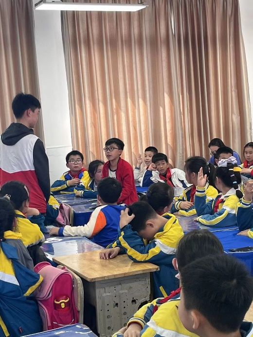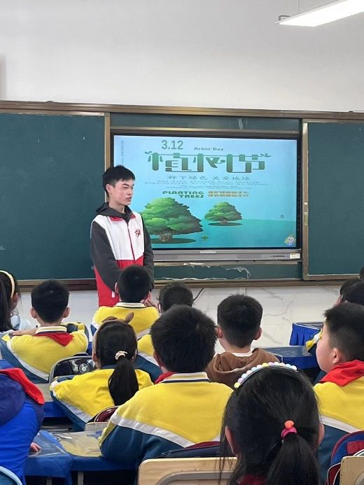 活动开始,志愿者向同学们介绍了植树节的由来、植树的重要性和相关故事,同学们端正地坐在座位上,全神贯注地聆听讲解。在提问环节,同学们蓄势待发,小手如雨后春笋般举起?;疃械氖秩攘?,气氛活跃,有问有答。期间,志愿者们还为回答问题的同学送上了精美的明信片,激励同学们植树造林的热情。