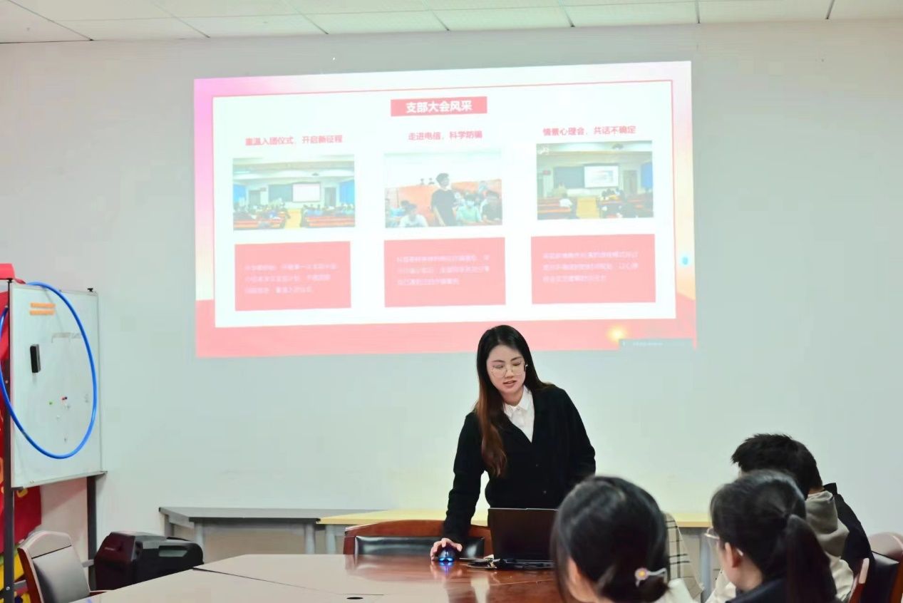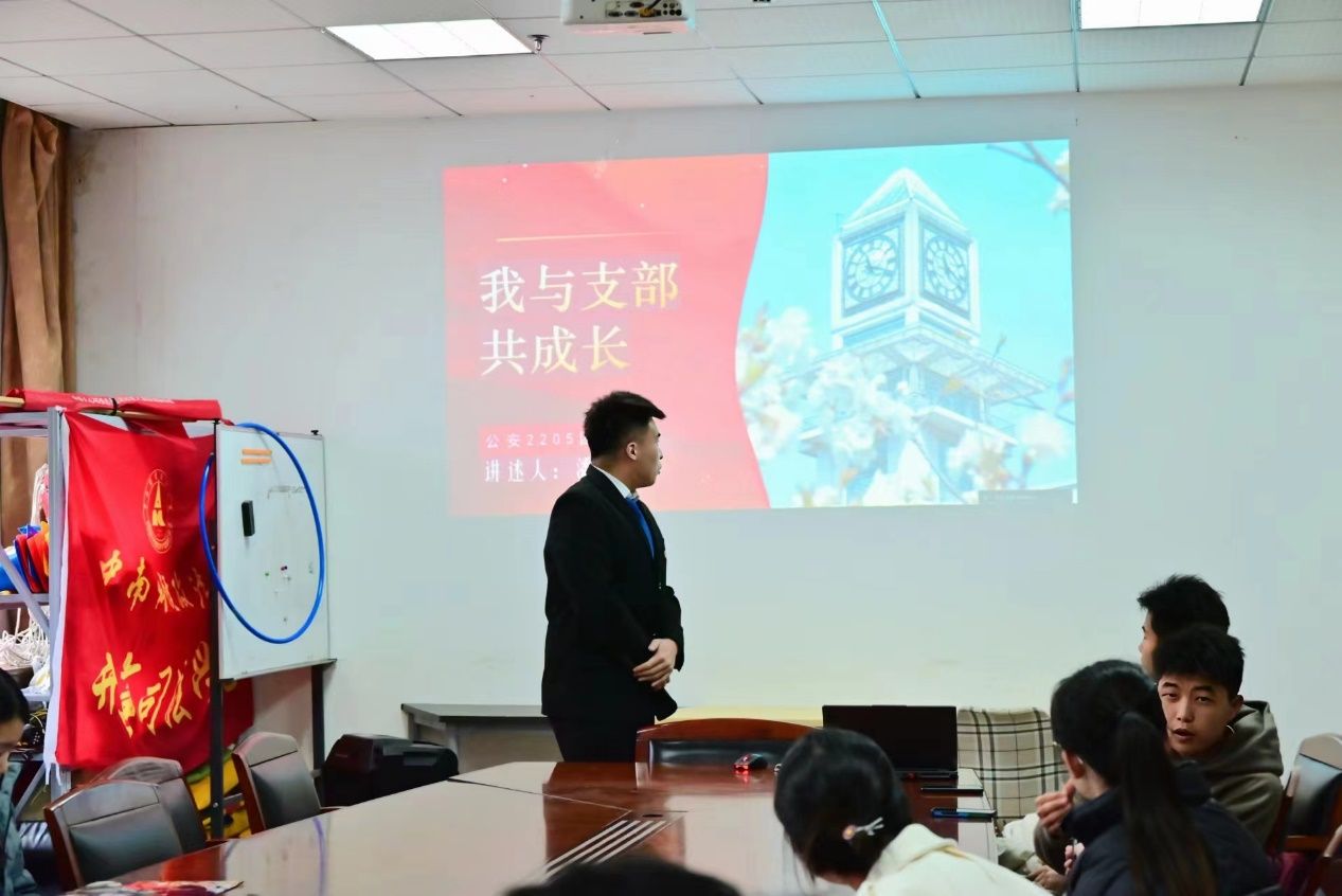 中午十二时,大赛在文治楼会议室准时拉开帷幕,此次团支部风采展示大赛共有来自21级与22级的七个团支部参加,团支书们分别从支部生活、组织建设、工作体会三方面来共话“我与支部共成长”的历程。在展示中,公安2102团支书高云锦同学推广了班级特色团员教育机制,公安2103团支部书记卢沿铮从“三会两制一课”的落实情况、青年大学习完成情况与支部大会风采等方面来展现团支部日常生活,赢得在场评委与同学的掌声。