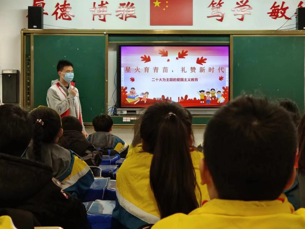 新闻网讯(通讯员 黄元添)为深入学习贯彻党的二十大精神,加强青少年爱国主义教育,引领青少年树立正确的世界观、人生观、价值观,增强历史责任感和使命感,培育其成长为建设社会主义现代化强国的中坚力量。2月23日下午,星火燎原特色团支部的成员们奔赴武汉市光谷第五小学,刑事司法学院星火燎原特色团支部与光谷第五小学合作举办了以“星火育青苗,礼赞新时代”为主题的星火课堂。