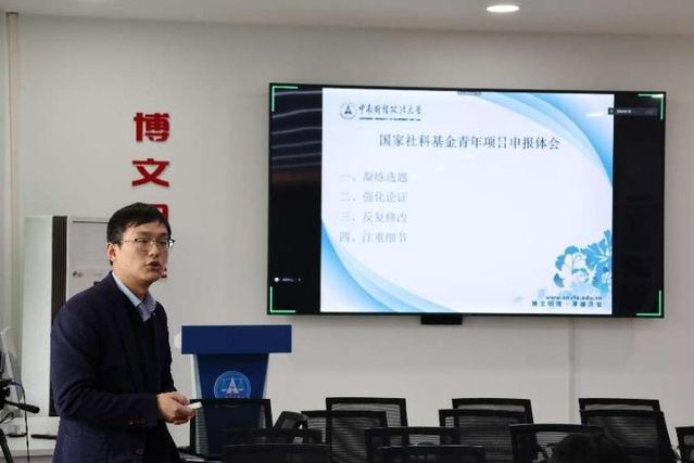 接着,法学院黄志慧副教授以国家社科基金年度项目为主题,从凝练选题、强化论证、反复修改和注重细节四个方面展开?;浦净鄹苯淌谠诜窒碇刑傅剑嚎翁庋≡褚岢治侍獾枷颍ü抑卮笮枨?,结合学科热点问题,体现课题的学理性、实操性、创新性。在论证过程中要以高度的凝练性组织语言,充分考虑所写内容与论证观点的关联性,通过反复修改,不断完善细节,让标书更具吸引力与美观性。