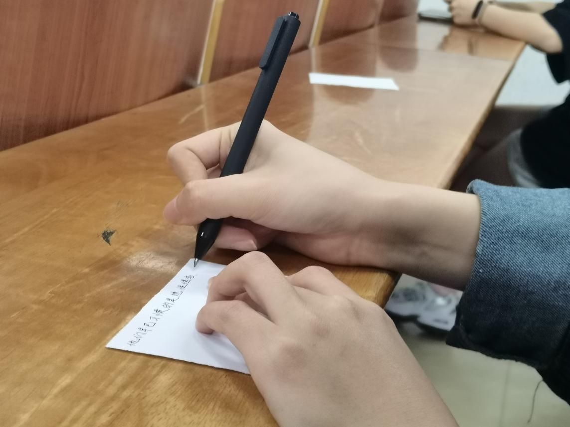 最后,由同学们写下对电影的感悟,这一环节在调动同学们的参与性、积极性的同时也加深了同学们对团日活动的印象。