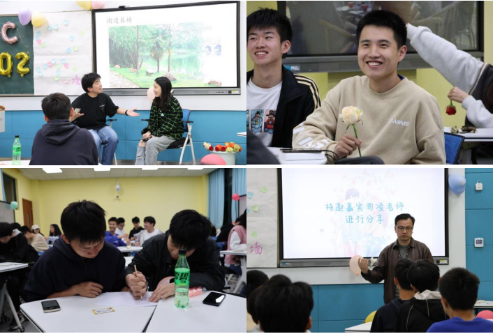班会伊始,同学们在引导下进行了颇为有趣的签到小仪式,也拿到了准备好的鲜花和刮刮乐。首先由班级导师周凌老师进行了分享,他在交流中介绍了自己的恋爱故事,鼓励大家主动追寻美好的恋爱关系,也给大家提供了可行的恋爱建议。