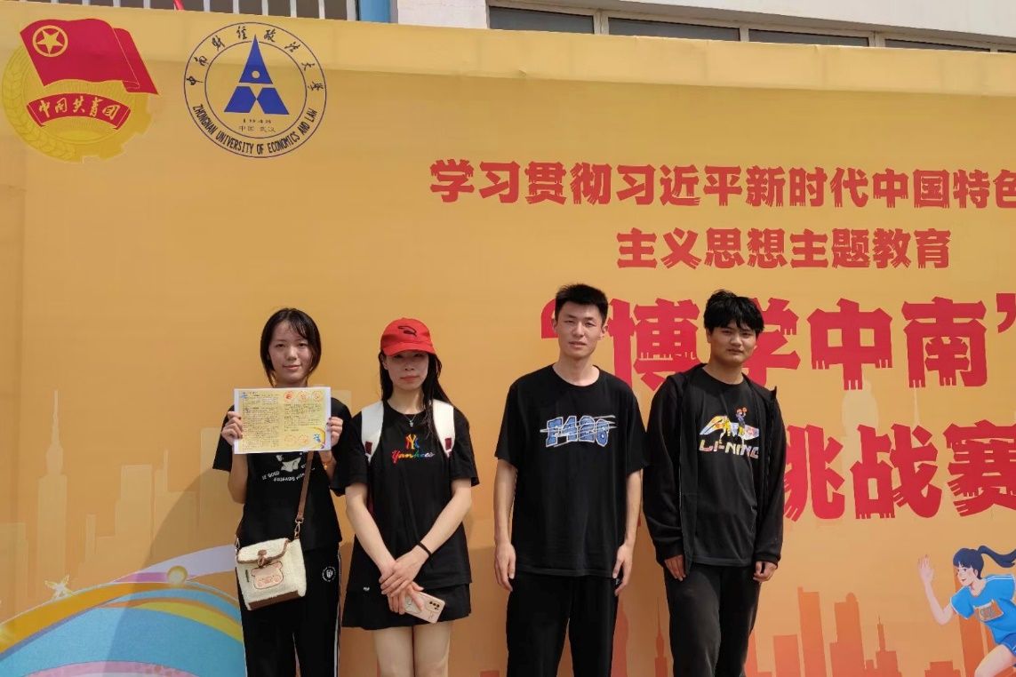 新闻网讯(通讯员 刘韫嘉 杜东润)书香润四海,翰墨行五洲。为响应校团委、校学生会号召,在书籍中开拓视野、感悟人生,深入推进书香校园建设,同时契合当下“走下网络、走出宿舍、走向操场”主题群众性课外活动,5月7日,刑事司法学院两支四人队伍参加了校团委、校学生会共同举办的“希贤杯”系列竞赛之“博学中南”知识挑战赛,取得优异成绩。