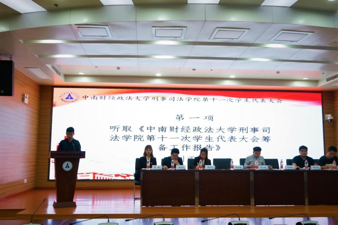 正式会议前,本次大会预备会议有序召开。筹备委员会委员刘孟坦宣读《中南财经政法大学刑事司法学院第十一次学生代表大会筹备工作报告》,筹备委员会委员李宇轩宣读《中南财经政法大学刑事司法学院第十一次学生代表大会代表资格审查报告》、《中南财经政法大学刑事司法学院第十一次学生代表大会会议议程(草案)》,并提交大会表决通过。