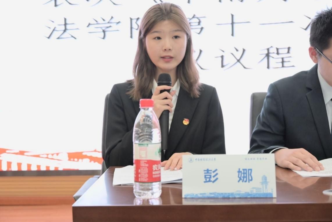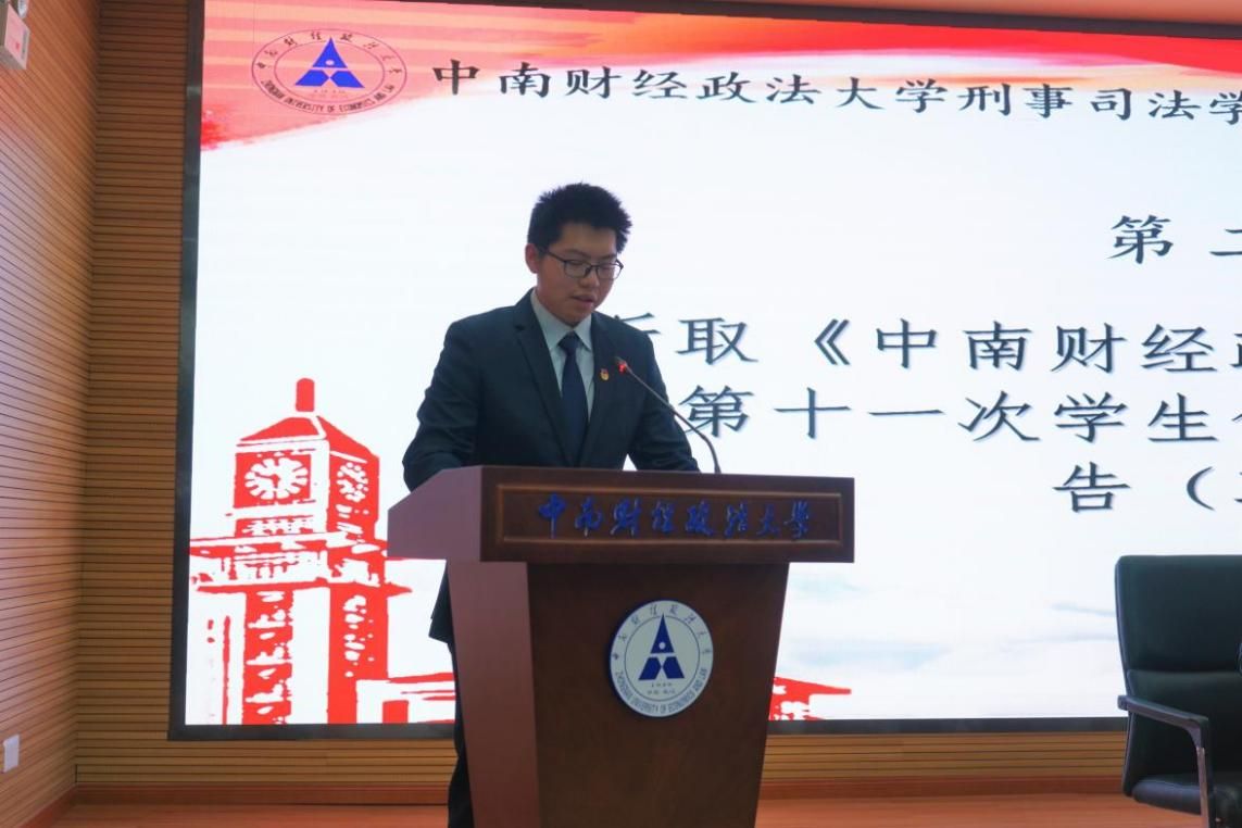 刑事司法学院学生会第二十四届主席团成员李宇轩宣读了《中南财经政法大学刑事司法学院第十一次学生代表大会学生权益提案工作报告(草案)》。报告全方位、多领域地覆盖了同学们对于学习生活最关心的主要问题,主要分为校园建设、学术学务、生活服务三个方面。代表们在认真听取报告后,一致审议通过。