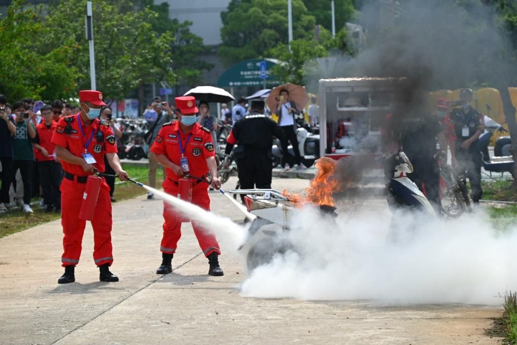 在演练正式开始之前,保卫部副部长李远征围绕消防安全问题发表了讲话,着重强调了校内学生使用飞线为电动车充电的问题,飞线充电存在极大的安全隐患,对广大师生的安全形成了较大的威胁,学校接下来会严格禁止飞线充电,全面切实保障校园用电安全,随着夏季高温天气的到来,电动车起火的概率大大增加,掌握电动车防火常识及基本的灭火技能很有必要。