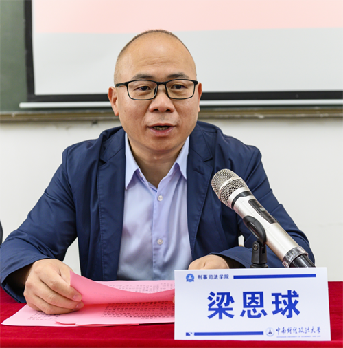 随后,佛山市公安局党委委员、副局长梁恩球发表讲话。他表示,首先要感谢中南财经政法大学刑事司法学院各位老师和领导的辛勤筹备和周密安排,给佛山警方提供了优质的交流学习的机会和平台,相信在专家学者的带领下能够进一步提高培训班干警们的知识水平,增强法制支队的管理能力,适应好执法新形势,提升佛山市公安局的执法公信力。梁恩球强调,佛山市局党委寄予高度期望和支持,期待学员们能够全身心投入、学有所成、学以致用,回到岗位后能够充分发挥骨干带头作用,共同谱写佛山市法治建设新篇章。最后,梁恩球副局长要对本次培训班提出三点要求,一要严守培训纪律,二要提高理论知识学习并联系实际工作的需要努力提升自己的管理水平,三要健康生活快乐学习。最后梁局长再次对我院组织和安排本次活动的领导和老师们表示衷心的感谢。