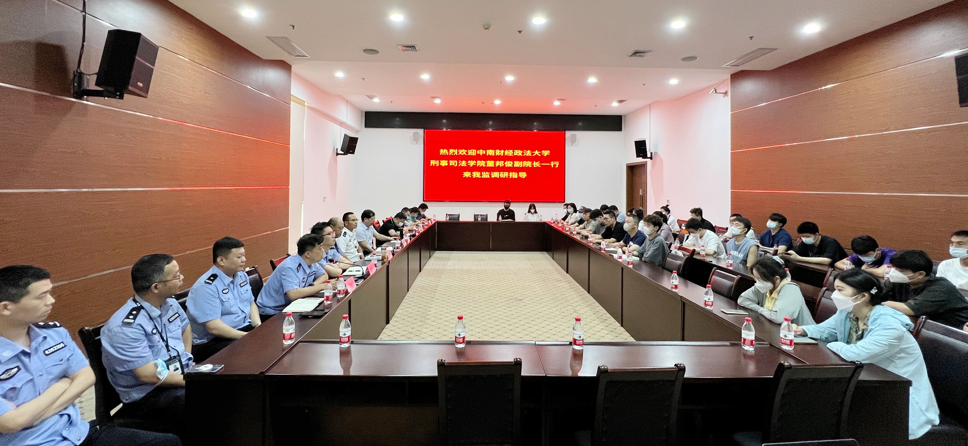 新闻网讯(通讯员李钊瑾)6月8日,我院副院长董邦俊教授带领学院张敬副教授、李正新副教授、栾兴良老师、许辉老师及我院博士研究生、硕士研究生、本科生赴湖北省洪山监狱就监狱执行、狱内侦查、检察监督等主题开展现场教学与调研座谈。
