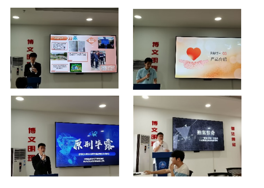 在现场的答辩环节中,各位答辩人向评委和同学们展示了“妙守担青-一青少年?;ぶ悄苊教褰换テ教ā?、“龙强食品--非转基因原豆提炼与酿造的精品酱油宣推计划”、 “猎证先锋——法庭科学与证据诉讼技术应用推广的创新者“等十二个项目成果。各团队通过详细的PPT内容,流利的答辩演说来完成小组的项目答辩。项目涵盖了科学技术、社交娱乐、食品、司法等各类问题,并对相关问题做出了深刻探讨。