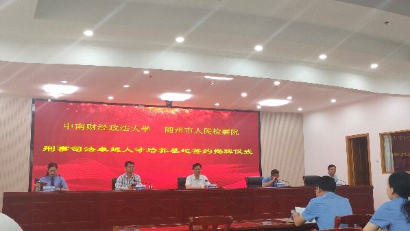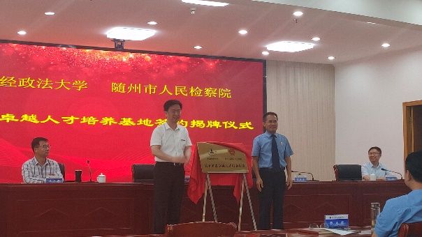 合作共赢,双向奔赴。到达随州市人民检察院后,我院实习师生受到了随州市人民检察院的热情欢迎和款待。上午十点半,在大会堂隆重举行了随州市人民检察院与中南财经政法大学刑事司法卓越人才培养基地签约揭牌仪式。