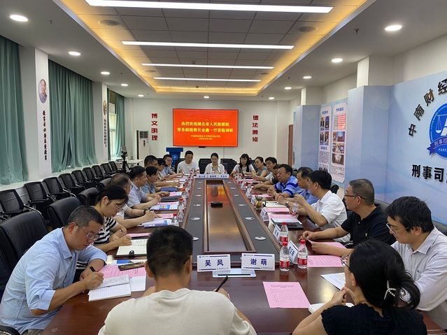 新闻网讯(通讯员 刘宇)为推动学习贯彻习近平新时代中国特色社会主义思想主题教育调查研究走深走实,助力湖北检察机关不断提高实质化监督办案能力,充分发挥高校司法鉴定专业技术优势,聚焦司法实践中的社会现实需求,8月10日上午,湖北省人民检察院党组副书记、常务副检察长金鑫一行受邀莅临,与学院党政领导班子成员、司法鉴定中心及法庭科学系教师代表等围绕“检校共建”有关事宜深入座谈。湖北省人民检察院检察技术信息处处长樊晓萍、副处长周盛东,和我校原党委常委、副校长、学科创新基地主任闫平、信息与安全工程学院副院长杨俊及我院院长胡向阳、法庭科学系主任杨敏等参加。本次会议由我院党委书记张志刚主持。