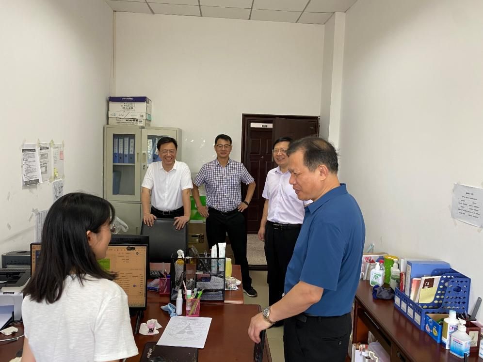 新闻网讯(通讯员 柯希鹏)为落实学校2023年秋季新学期工作部署,切实做好开学迎新等重点工作,8月24日上午,学院院长胡向阳、院党委书记张志刚、副院长董邦俊、院党委副书记万里雪、副院长郭泽强等党政领导班子成员开展新学期走访工作,在文治楼、文清楼亲切慰问我院教辅员工。