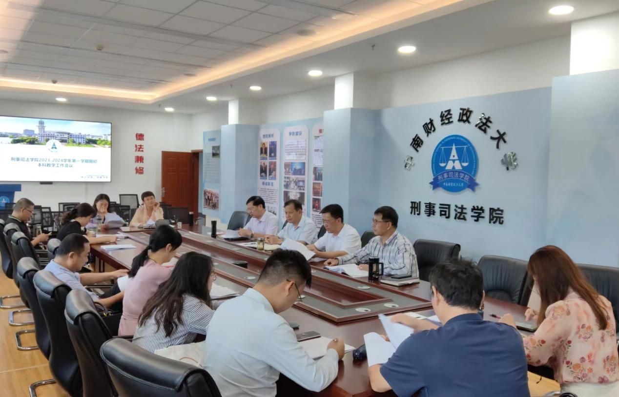 新闻网讯(通讯员:单以成)为更好地推进本学期我院本科教学工作的开展,我院于8月31日下午在文治楼二楼会议室召开了2023-2024学年第一学期期初本科教学工作会议。刑事司法学院院长胡向阳教授、党委书记张志刚书记、副院长董邦俊教授、治安学学科带头人董少平教授、刑法学学科代表老师魏汉涛教授、各系(中心)、教研室正副主任及各学科带头人参加了会议,会议由郭泽强副院长主持。