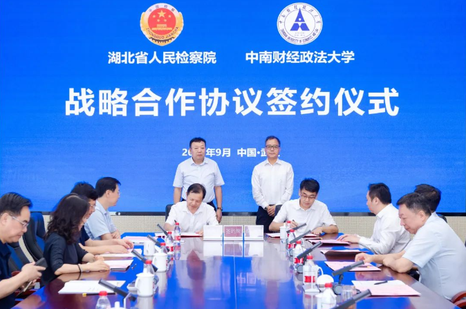 此后,中南财经政法大学刑事司法学院院长胡向阳与湖北省人民检察院党组成员、副检察长熊昭辉分别代表检校双方共同签署“法庭科学联合实验室”战略合作协议。