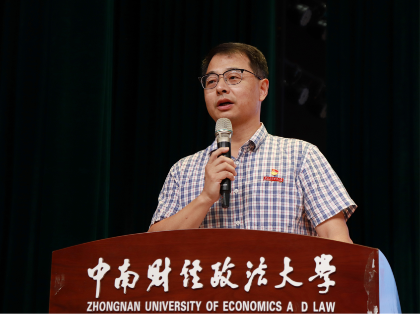 接着,教师代表郭泽强教授发表讲话。郭教授深情回顾自己在学院二十五年的教学工作经历,细数其中所遇的困难与所得的成就,感慨教学相长的动人魅力,总结认为高等教育工作应当做到人才培养与学术研究并重、艰苦奋斗与自主创新并举。同时,他生动讲述自己多年来的学术科研经历,重点强调在工作学习中应当将坚持不懈一以贯之,亲切勉励新生们在入学后能够永葆入学初心、坚持终身学习、树立远大理想,并真诚祝愿新生们在人生新阶段能够扎根刑司土壤、立足家国情怀、度过无悔青春。
