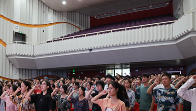 最后,2023级新生共同宣读入学誓词,坚定理想信念,立志民族复兴,不负青春岁月。随着入学誓词的宣读完毕,刑事司法学院2023级新生开学典礼也划下句号。
